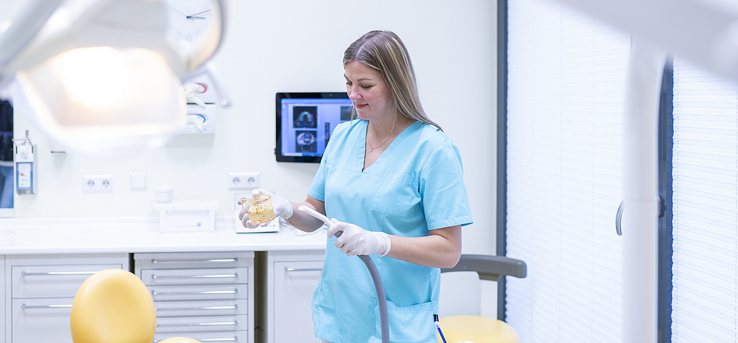Im Zahnzentrum Detmold verfügen wir über einen innovativen Dioden-Laser, den wir unter anderem bei Wurzelkanalbehandlungen und Parodontitis- beziehungsweise Zahnfleischbehandlungen einsetzen. Zudem können wir mit dem Laser überempfindliche Zahnhälse langfristig versiegeln.
